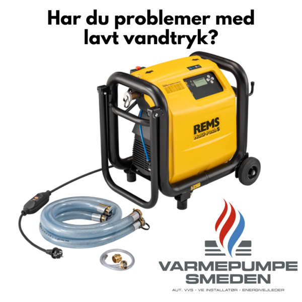 Hos Varmepumpesmeden tilbyder vi professionel rensning af vandrør med vores avancerede skylle- og rensemaskine REMS Multi-Push SL, så du kan få fuldt vandtryk igen.